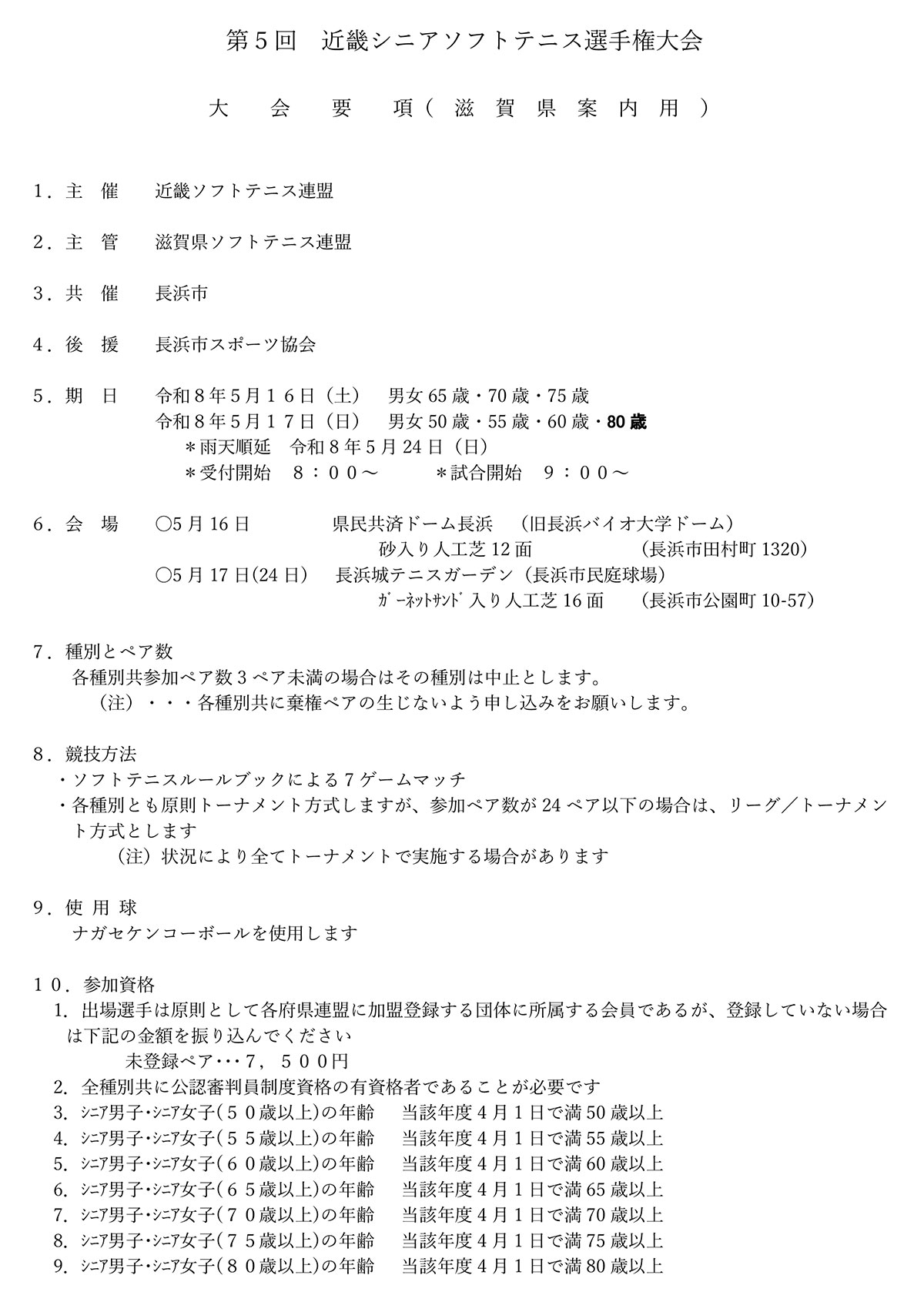 第5回 近畿シニアソフトテニス選⼿権⼤会 要項