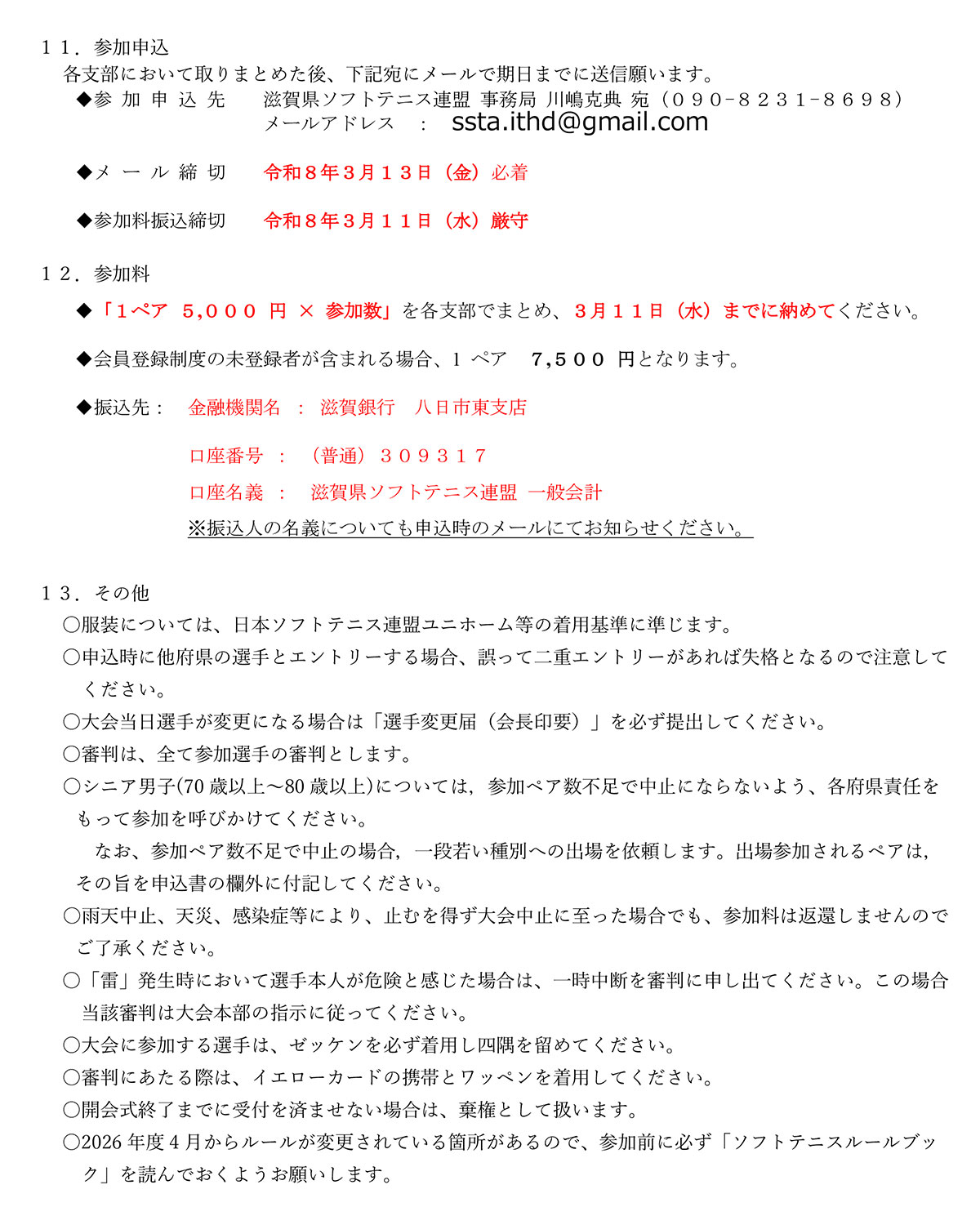 • 令和6年度 滋賀県ソフトテニス連盟大会要項・申込書
